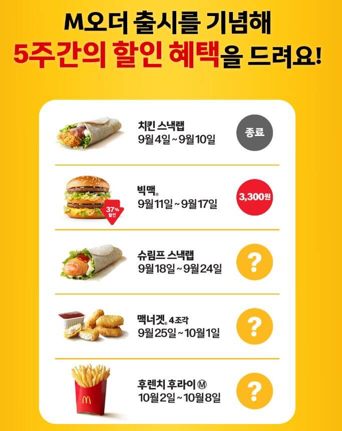 맥도날드 런치메뉴 가격